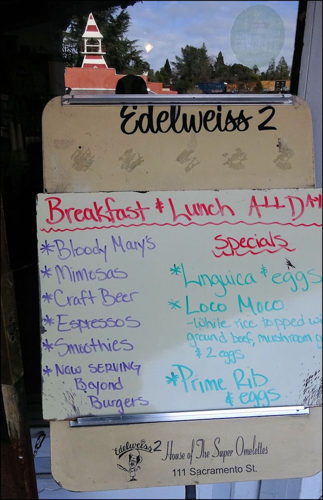 Whether you're a local or passing through, Edelweiss Restaurant 2 is a favorite among diners looking for a satisfying breakfast or brunch. Don't miss out on this hidden gem in Old Town Auburn!